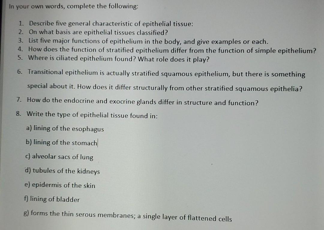 Solved Epithelial Tissue Surfaces Linings And Secretory Chegg Com